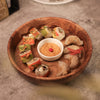 Bring your snacks to center stage with the thoughtful design of our handcrafted Snacit chip-and-dip platter made from acacia wood and paired with a ceramic dip bowl. Snacit comes from the words “snack” and “it” which is a playful nudge to snack it, share it, and enjoy it. It features a round board with a recessed center to securely hold the bowl, and gently raised edges to keep your snacks contained.