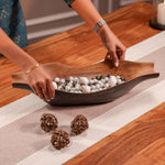 Elevate your space with the natural charm of Prakriti, a unique decor piece handcrafted from acacia wood. Designed to resemble the soft curves of a leaf, Prakriti brings an earthy elegance to coffee tables, shelves, or consoles. While functional enough to serve, it’s best enjoyed as a sculptural centrepiece that celebrates the beauty of nature.