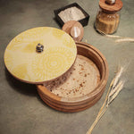 Add a touch of natural elegance to your kitchen with our handcrafted Patra roti box, made from premium acacia wood. Named after the Sanskrit word Patra, meaning ‘vessel’ or ‘container,’ this beautifully crafted piece reflects a harmonious blend of tradition and modern design, making it a timeless addition to any home. Each roti box is skillfully handcrafted by artisans from Moradabad, blending traditional techniques with modern design. Using time-honored woodworking methods, they shape, smooth, and refine the wood to create a perfectly balanced structure with a flawless finish. The result is a durable yet elegant roti box holder that seamlessly combines style and practicality.