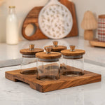 Sheen Set of 4 Glass Jars with Acacia Wood Airtight Lid and Tray