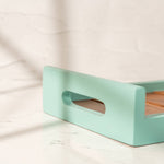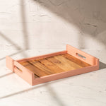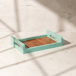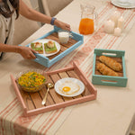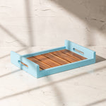 Each tray is handcrafted by artisans in Moradabad using traditional techniques that balance beauty with everyday use. The natural acacia wood highlights unique grain patterns, while the painted edges add a subtle pop of color.