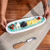 Add a charming touch to your table with our handcrafted ‘Oval and Out’ Serving Platter, made from acacia wood with an enamel coating. This long oval platter features a stunning blue and white design, offering an elegant aesthetic that enhances any table setting. Each platter is skillfully handcrafted by artisans from Moradabad, blending traditional techniques with modern design which makes each piece one-of-its-kind.