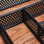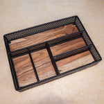 The perforated iron frame is curated intricately and is seamlessly integrated to enhance both strength and aesthetic appeal. The multi-compartment design offers ample space to store cutlery, office supplies, kitchen essentials, or decorative items, making it a versatile addition to your kitchen, dining area, office, or vanity. Its sturdy construction and functional layout ensure effortless organization while adding a refined touch to any space. With its stylish blend of wood and metal, this organizer also makes a thoughtful gift for housewarmings, weddings, and festive occasions.