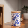 Add a touch of elegance to your kitchen with our handcrafted ‘Bloom’ Canister, made from premium mango wood and adorned with a delicate floral design. The canister is finished with an enamel coating that enhances its durability while preserving the natural beauty of the wood. Creating each canister is an intricate journey, where artisans from Moradabad carefully select the finest mango wood, paying close attention to its natural grain. Using time-honored techniques, they shape and refine the wood over hours of meticulous handcrafting. The process requires great expertise to achieve a seamless cylindrical form, ensuring smooth edges and a flawless enamel-coated finish. The canister is topped with a sturdy wooden lid featuring a metal loop handle, designed for easy access while adding a rustic yet refined touch. Ideal for storing beans, rice, sugar, coffee, snacks, cereals, pickles, spices, and more, these stylish canisters are more than just a storage solution. They help you organize your kitchen, declutter pantry spaces, and enhance your home’s aesthetic. At Ireka Homes, we redefine thoughtful living by creating products that celebrate simplicity, sustainability, and the beauty of nature.