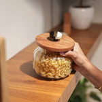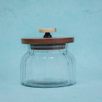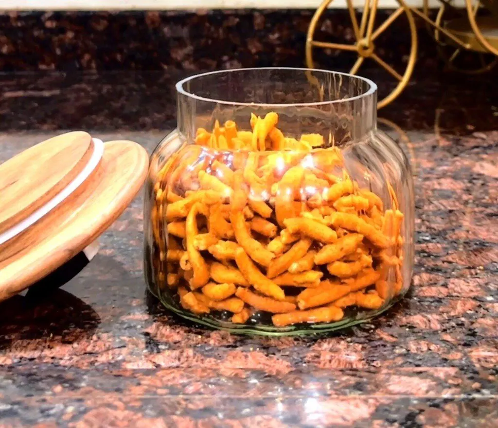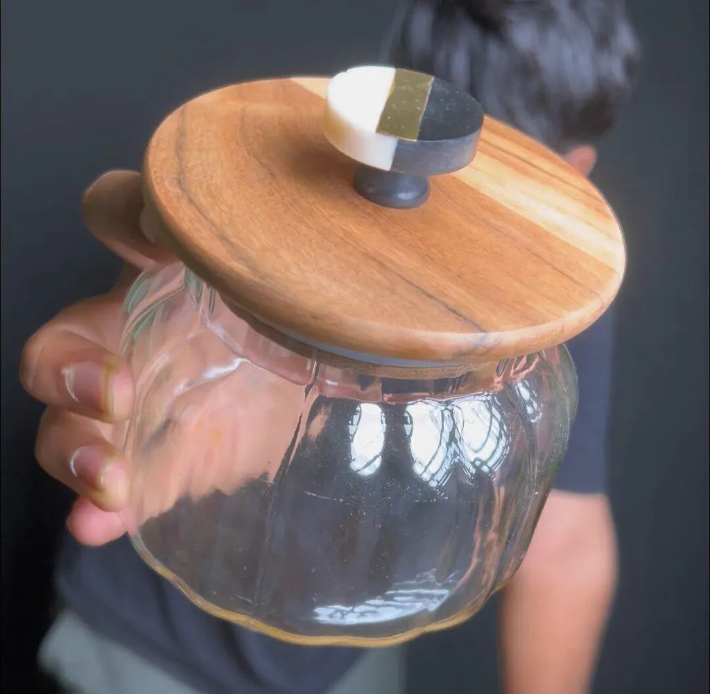 Add a touch of elegance to your kitchen with our handcrafted 'Bubble' Canisters, made from premium hand-blown glass and topped with a beautifully crafted airtight acacia wood lid. The canister gets its name from the delicate bubble-like patterns on the glass, creating a light, airy texture that adds depth and character to its design. Creating each canister is an intricate process where skilled artisans from Moradabad hand-blow molten glass with precision, ensuring a seamless and well-balanced form. Using time-honored techniques, they shape and refine the glass to achieve perfect clarity, symmetry, and a flawless finish that enhances both durability and elegance. The handcrafted acacia wood lid, accented with a resin knob for easy access, makes each canister one of a kind with its unique natural grain and finish, adding warmth and seamlessly blending functionality with natural beauty. Ideal for storing beans, rice, sugar, coffee, snacks, cereals, pickles, spices, and more, these stylish canisters are more than just a storage solution. They help you organize your kitchen, declutter pantry spaces, and enhance your home’s aesthetic. At Ireka Homes, we redefine thoughtful living by creating products that celebrate simplicity, sustainability, and the beauty of nature.