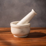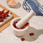 No desi home is complete without a mortar and pestle. Our Crushini Mortar & Pestle is handcrafted from solid white marble and made for everyday grinding. It brings lasting function and a clean, classic touch to your kitchen countertop.