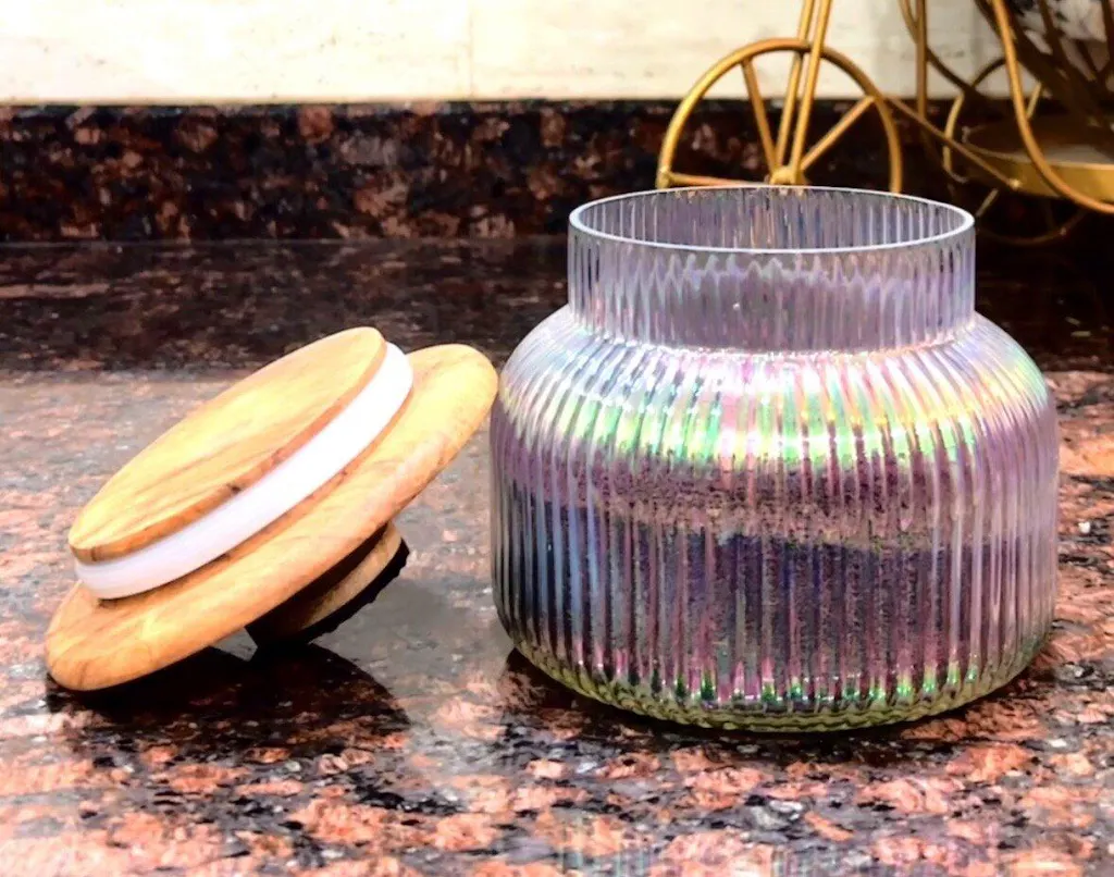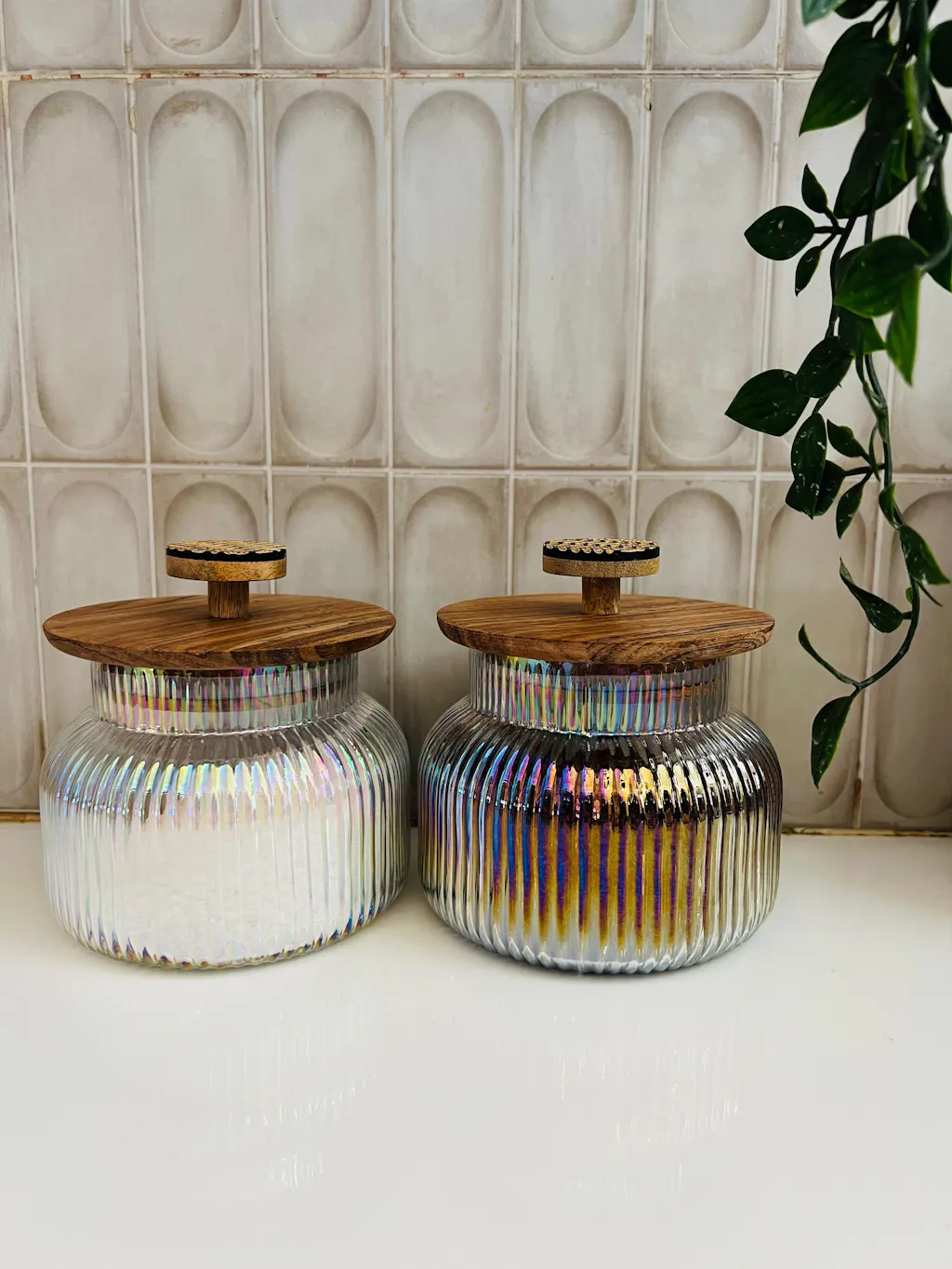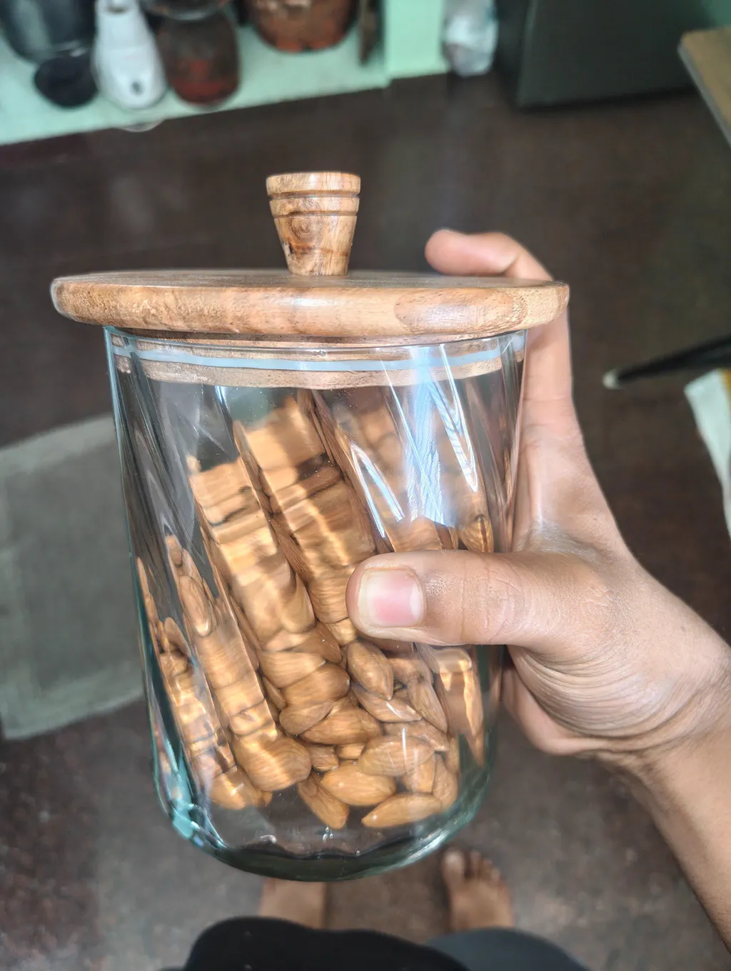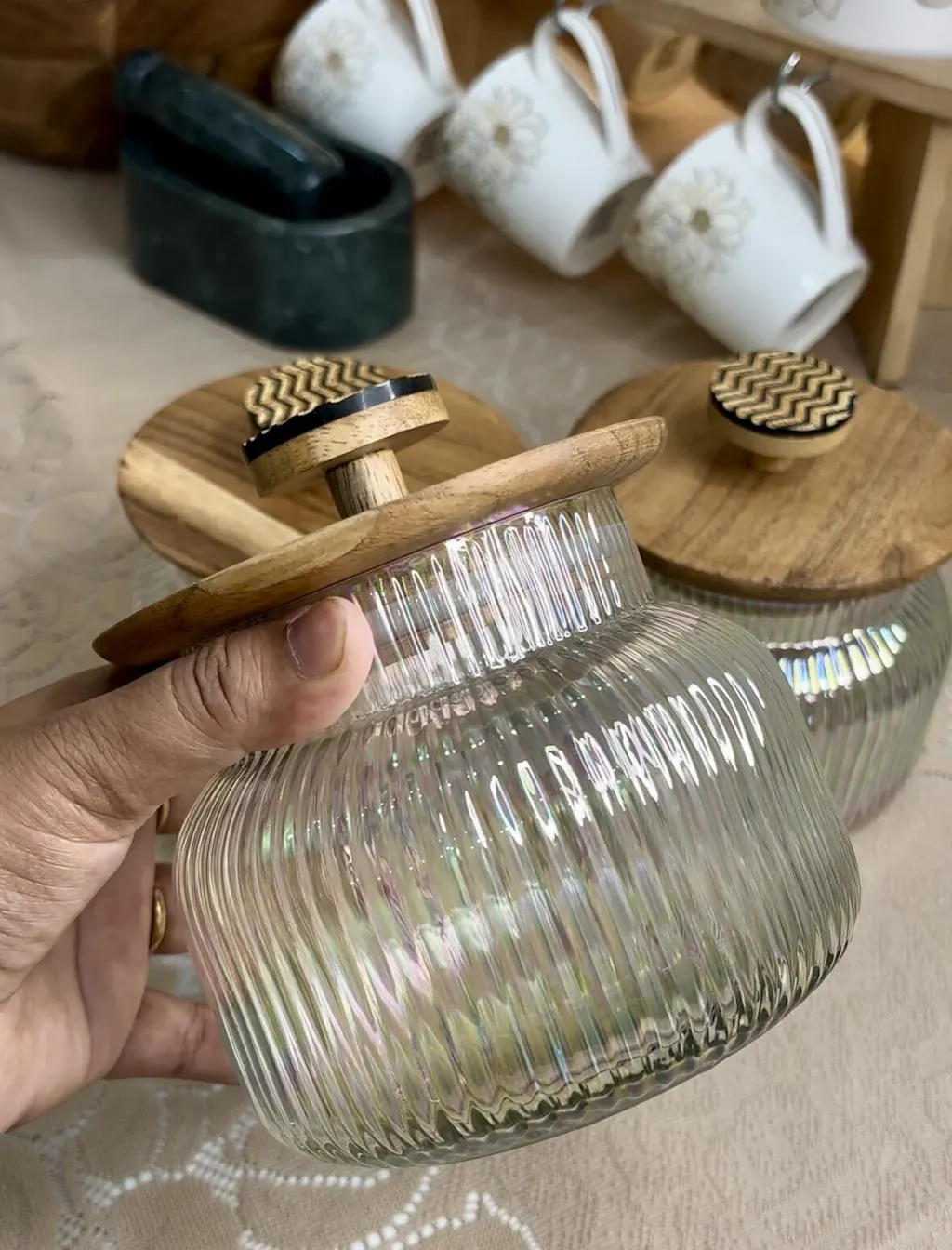 Add a touch of elegance to your kitchen with our handcrafted 'Gleam' Canisters, made from premium hand-blown glass and topped with a beautifully crafted airtight acacia wood lid. The 'Gleam' Canister gets its name from its radiant, polished surface that catches and reflects light, adding a luminous touch to your kitchen. Creating each canister is an intricate process where skilled artisans from Moradabad hand-blow molten glass with precision, ensuring a seamless and well-balanced form. Using time-honored techniques, they shape and refine the glass to achieve perfect clarity, symmetry, and a flawless finish that enhances both durability and elegance. The handcrafted acacia wood lid, accented with a resin knob for easy access, makes each canister one of a kind with its unique natural grain and finish, adding warmth and seamlessly blending functionality with natural beauty. Ideal for storing beans, rice, sugar, coffee, snacks, cereals, pickles, spices, and more, these stylish canisters are more than just a storage solution. They help you organize your kitchen, declutter pantry spaces, and enhance your home’s aesthetic. At Ireka Homes, we redefine thoughtful living by creating products that celebrate simplicity, sustainability, and the beauty of nature.
