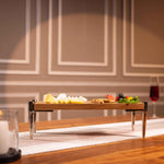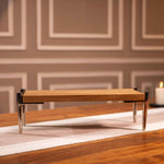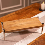 Each stand is carefully handcrafted by skilled artisans from Moradabad, where woodworking and metalworking traditions blend seamlessly with thoughtful modern design. The unique natural grain of the wood makes every piece one of a kind. The sleek, sturdy aluminum legs provide height and stability, adding a refined and contemporary touch to any spread.