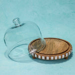 Sugar Sphere Acacia Wood Cake Stand with Glass Dome
