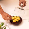 Sugary Affair combines rustic warmth and modern style, turning a simple cake stand into a stunning piece with its walnut finish and metal feet. Handcrafted by skilled artisans in Moradabad, the Acacia wood base showcases the natural charm and durability of sustainably sourced wood. The unique grain and color variations highlight the natural beauty of the wood, making every piece special. The hand-blown glass dome keeps your cakes fresh while adding sophistication. Whether as a festive centerpiece or a daily essential, this stand makes your desserts stand out. Treated with food-safe lacquer and sealer, the base is resistant to moisture, ensuring lasting beauty and functionality. Wipe the wooden base clean with a damp cloth and hand-wash the glass dome. Apply mineral oil occasionally to keep it shiny and looking its best.