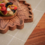 Add an artistic touch to your table with our handcrafted ‘Sunny Side Up' Serving Platter, made from acacia wood with intricate laser etching. The name ‘Sunny Side Up’ is inspired by its graceful sunflower shape, offering an elegant aesthetic that enhances any table setting. Each platter is skillfully handcrafted by artisans from Moradabad, blending traditional techniques with modern design. The rich, honey-hued tones and intricate grain patterns make every piece a one-of-a-kind masterpiece, perfect for adding warmth to your table.