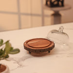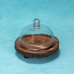 Vriksha Acacia Wood Cake Stand with Glass Dome